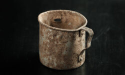 Кружка немало времени пролежала в запасниках, пока руки не дошли слегка её расчистить. Кружка имела пулевое/осколочное пробитие, да и сохранность оказалась удручающей, но общую унылую картину оживило интересное…